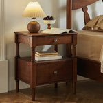 This solid wood nightstand combines classic design with practical storage. With two drawers and a stable structure, it provides convenient organization for the bedroom. Its timeless look blends easily with different styles of furniture, making it a reliable and durable addition to your home.