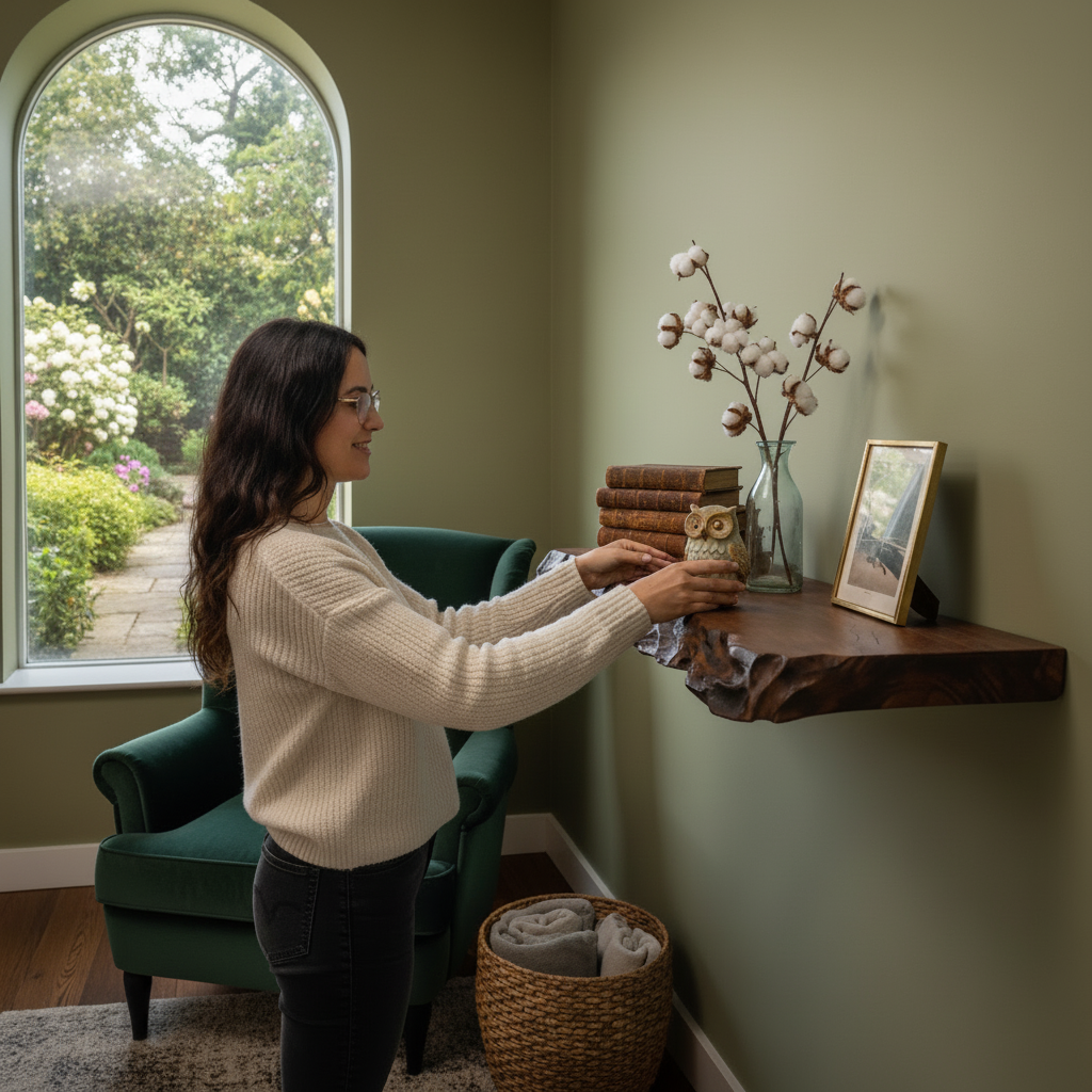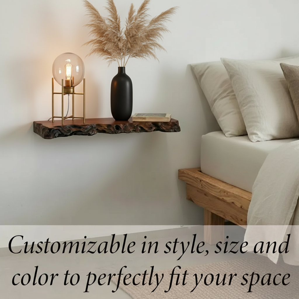 Bring warmth and character to your home with this handcrafted live edge floating shelf. Designed with organic edges and rich walnut tones, each piece is unique and full of natural charm. Perfect for displaying books, plants, or decorative accents, it blends rustic beauty with modern minimalism, making it a versatile addition to any room.