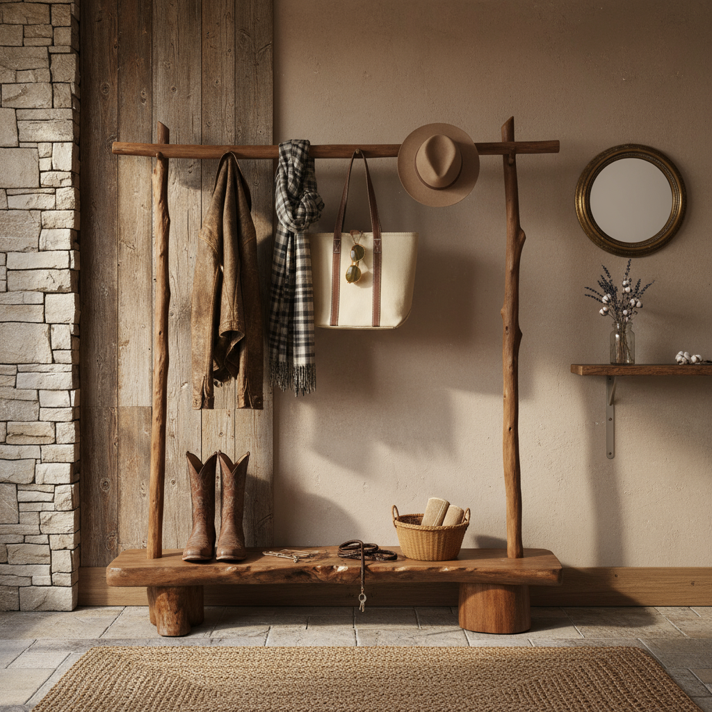 Bring natural charm and practical storage into your home with this Rustic Solid Wood Coat Rack. Handcrafted from natural logs, each piece is unique with its organic texture and shape. Designed with a sturdy bench, it offers a convenient place to sit, store shoes, or place baskets, while the top rail provides ample space for coats, hats, scarves, and bags. Perfect for entryways, bedrooms, or farmhouse-style interiors, this versatile rack blends functionality with rustic elegance.