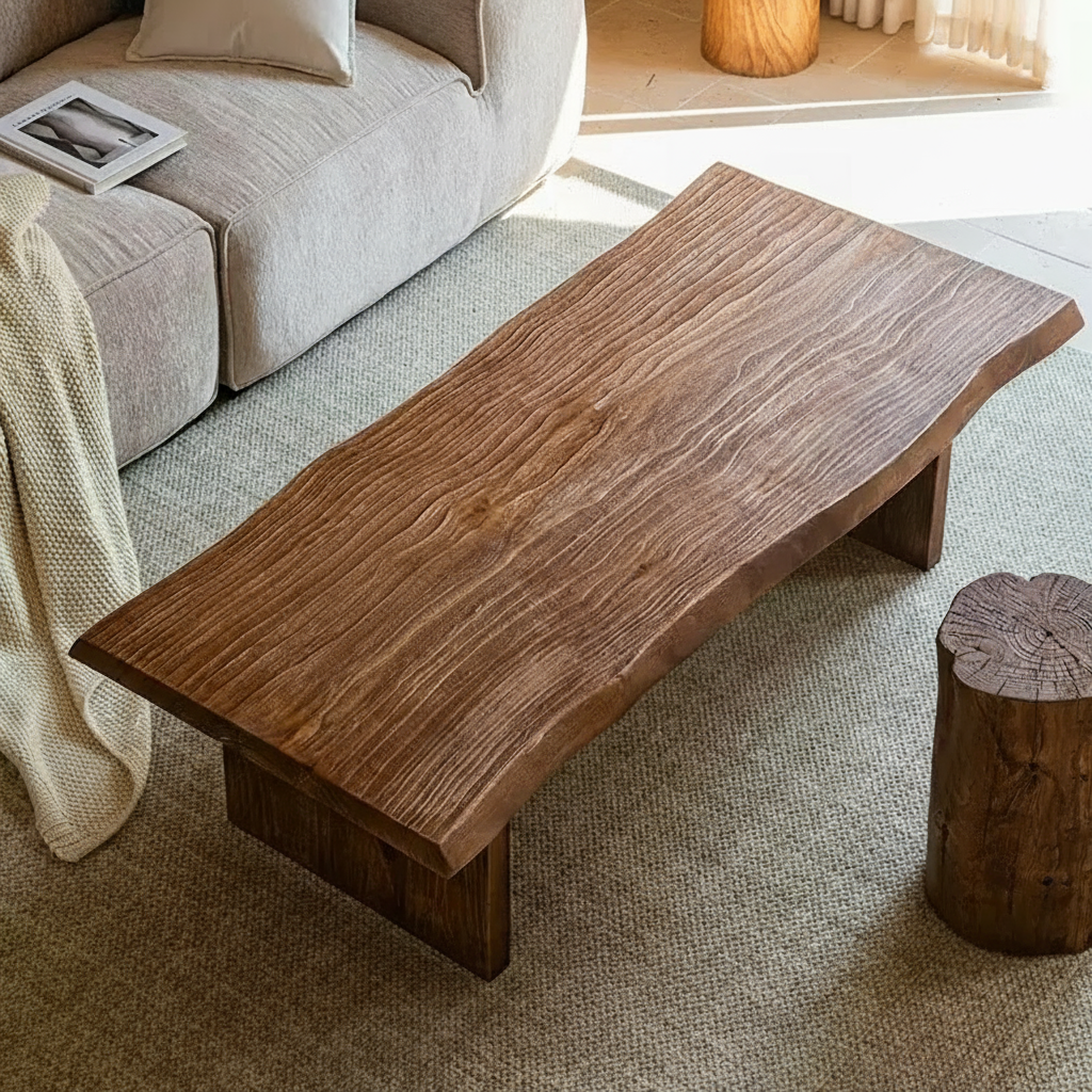This coffee table features a solid wood construction with a natural live-edge design, adding warmth and character to your living space. Its sturdy structure and timeless look make it a versatile centerpiece that blends with modern, rustic, and minimalist interiors.