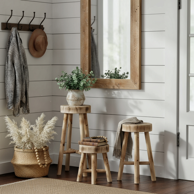 Rustic Solid Wood Stool – Multi-Purpose Accent & Plant Stand